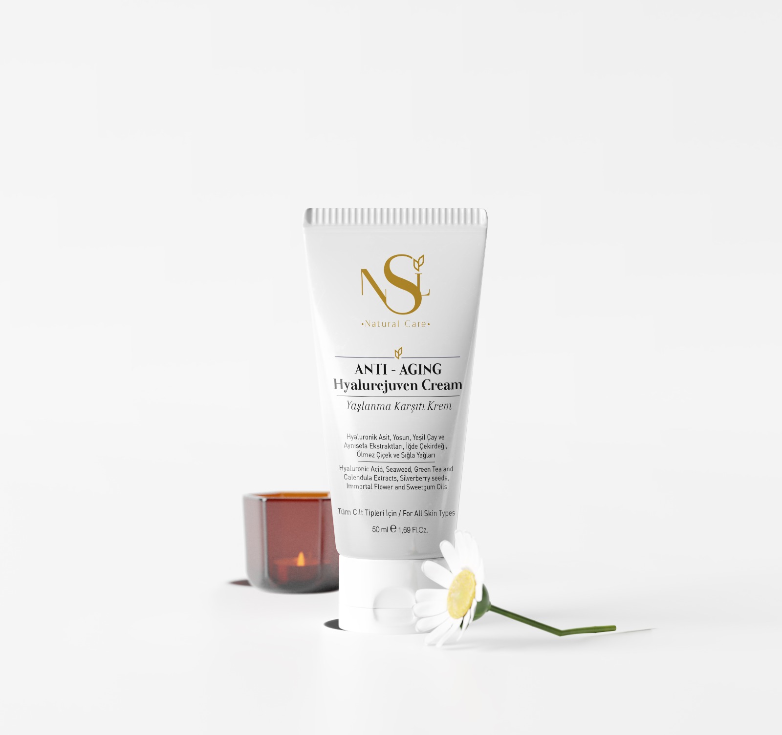 Uzun süren klinik AR-GE çalışmalarımız sonucunda elde ettiğimiz yaşlanma karşıtı kremimiz zengin bitki flavanoidleri, hyaluronik asit, cildi besleyici, kompleks B vitaminleri, cilde aydınlık ve ışıltı veren C vitamini, cildi derinlemesine nemlendiren E vitamini, ve daha bir çok cilde faydalı mineraller içerir.